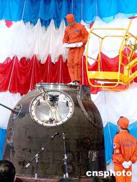 图:神舟五号载人飞船回收舱开舱