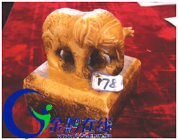 这枚玉玺上半部分为玉雕大象,下半部分为玉玺印章,刻有“顺治玉玺”字样。由于标价过高,这枚玉玺流拍。(刘昌敏)