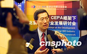 CEPA框架下北京CBD产业发展研讨会二十四日在北京饭店召开,香港贸易发展局基建业发展咨询委员会主席刘炳章在会后表示:北京CBD的发展应吸取香港中环商业区的经验教训,作好策略性规划,协调商业用地与公共空间的均衡发展。中新社记者:廖文静