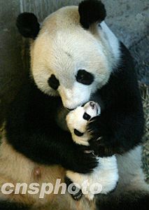 10月24日,初次做母亲的北京动物园八岁大熊猫“妞妞”精心护理出生六十二天的幼崽“甜甜”。体重从出生时150克到如今3,000克又有些淘气的“甜甜”,让为其梳理毛发的“妞妞”有些手忙脚乱。中新社记者:任晨鸣