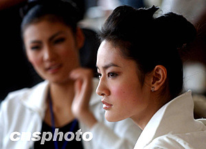 参加新丝路世界模特大赛的中国小姐,十月二十八日在以古色古香的发式出席杭州大厦的见面会。中新社记者:贾国荣