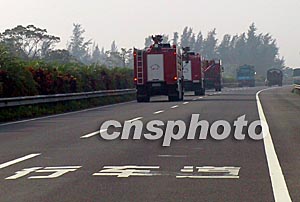 记者今天与海南省公安消防总队进口的多功能消防车队四度“遭遇”:一清早这个静候在海口市龙昆南路旁的火红车队吸引了路人的视线;大约九点半,在高速公路上,它们从记者车旁呼啸而过;当记者抵达博鳌亚洲论坛国际会议中心时,只见这个消防队伍已演练完毕撤离现场;而下午四时,在海口市的街头,记者又一次与它们相遇。