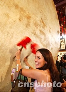 组图:世界模特大赛佳丽杭州鼓楼上击鼓撞钟