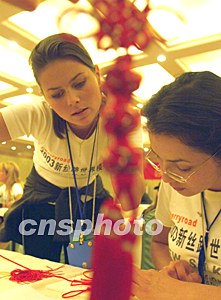 组图:世界模特大赛佳丽学做中国结