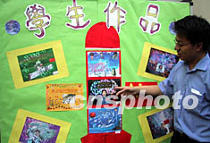 香港圣公会诸圣小学学生发挥创意,以计算机创作墙报板,祝贺杨利伟成功升空,并欢迎他光临香港。作者:张淑琴