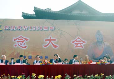 扬州市市长季建业在会上致辞。国家宗教事务局局长叶小文、日本奈良唐招提寺益田快范长老、台湾佛光山开山宗长星云、中日友好协会副会长文迟等讲了话。扬州大明寺方丈能修也在会上致了辞。