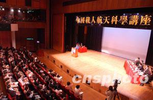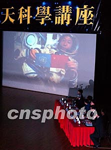 香港教育统筹局于11月3日在大会堂举办 “中国载人航天科普讲座”,期间首次播放载人航天过程的纪录片。中新社记者:洪少葵