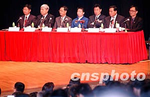中国载人航天工程总设计师王永志【右三】等代表团成员,11月3日出席香港举办的“中国载人航天科普讲座”,向教育界人士和学生介绍中国航天科技工程。中新社记者:洪少葵