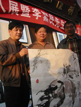 “太阳星城爱心之旅”的成员——著名画家李繁民先生现场挥毫作画,顷刻之间,一匹匹栩栩如生的骏马就跃然纸上。在旁观者中,有不少人是书画爱好者,他们就着李老师的骏马图点评,赞叹声不绝于耳。杭州的陈先生也是画马的爱好者,他说:“李老师的画已经跳出了传统画马的局限,有自己的创新之处。”