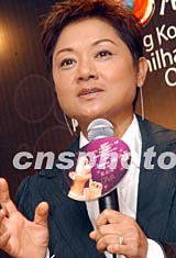 香港著名歌星叶丽仪将于除夕晚与香港管弦乐团同台合作庆祝新年来临,十一月五日叶丽仪在香港举行的记者会上为宾客即兴演唱。中新社记者:钱兴强