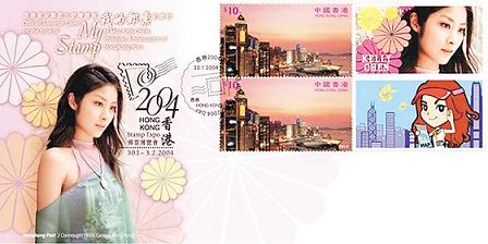 Kelly亲自创作了两款邮票,第一款选自其唱片专辑《爱》中的造型照;另一款则是配合这次大会主题旅游,特别邀请漫画家义务绘画卡通版Kelly游览香港维港的构图。