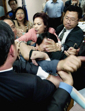 6日,因李登辉涉及“国安秘帐”问题,台湾政坛蓝绿阵营在“立法院”上演武打戏,双方大打出手场面混乱。