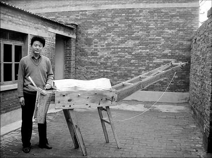 今年31岁的梁国君酷爱《三国演义》、《红楼梦》、《孙子兵法》等古典著作,尤其对书中涉及的一些古代工艺颇感兴趣。去年12月,梁国君观看央视《科学历程》节目,得知木牛流马引起很多人的兴趣,但苦于没人能够破解其原理并制造出来,让大家一睹真容。有专家认为木牛流马可能就是北方的独轮推车。木牛流马之谜激起梁国君的好奇心。他认真琢磨,猛然意识到木牛流马之所以能够运动,可能依据的是杠杆原理。他立即用硬纸片和钉子做了一只木牛的模型,用手一抬一推,模型果然向前移动,梁国君心里豁然开朗。从此以后,梁国君就利用节假日,按照《三国演义》中所说的尺寸买来木头,自己关在房间里叮叮当当地鼓捣起来。