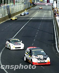 第五十届澳门格兰披治老爷车大赛八日举行新鸿基金融集团香港汽车会路车锦标赛排位赛,图为比赛激烈进行中。中新社记者:李刚