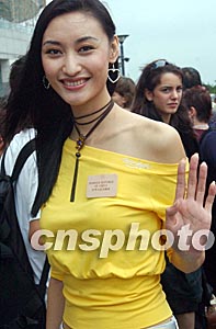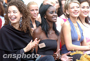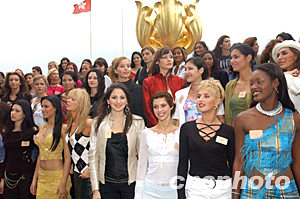 参加“第53届世界小姐”选美大赛的110个国家和地区的佳丽,十一月九日在香港金紫荆广场参加活动,图为来自乌克兰的选手引人注目。中新社记者:钱兴强
