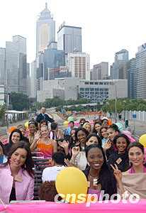 参加“第53届世界小姐”选美大赛的110个国家和地区的佳丽,十一月九日乘车巡游香港岛。中新社记者:钱兴强