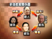 此外,台北“地院”审理新瑞都案时,李登辉及新瑞都大股东苏惠珍是以证人身份出庭,前国民党投管会主委刘泰英及刘泰英白手套李明哲是以被告身份出庭。