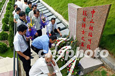 中新社福州十一月十二日电 (记者 陈国明)由民革福建省委、民革福州市委、福州三山陵园合作为中山舰福州籍抗日将士共建的碑园在福州三山陵园落成,并于十二日上午举行隆重的揭碑仪式。全国政协常委、民革中央副主席朱培康、福建省政协主席陈明义等有关领导及来自福建省各界人士及中山舰牺牲将士后裔二百余人参加了揭碑仪式。