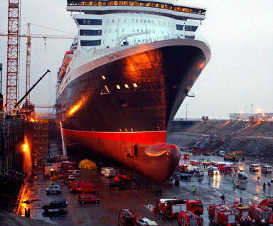 图:世界最大客轮"玛丽女王二世"舷梯坍塌