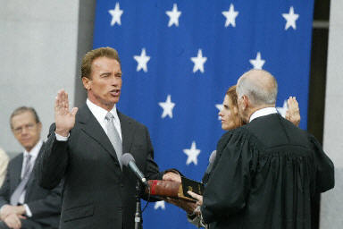 阿诺·施瓦辛格于美国当地时间11月17日宣誓就任加利福尼亚州第38任州长。施瓦辛格宣誓就职仪式吸引了大约740名记者参加,规模堪比美国总统就职仪式,世界各地数百万观众观看了仪式的现场直播。