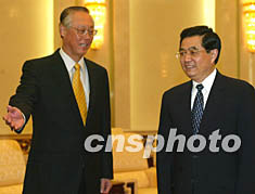 胡锦涛希望,中新双方本着平等互利、务实进取的精神,充分利用两国新的合作机制,指导并全面推进两国在各领域的交流与合作,把中新睦邻友好合作关系提高到更高的水平。