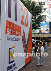 香港特别行政区区议会选举将于十一月二十三日进行投票,在香港街头区议会选举投票日标语引人注目。中新社记者:钱兴强