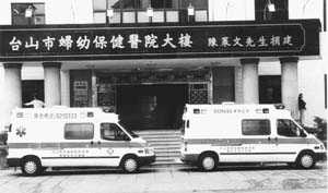 今年10月份,陈策文夫妇回到台山与该市妇幼保健医院的医务人员开座谈会。当了解到该院的医疗用车是由面包车改装而成,功能不够完善,影响医疗质量时,陈先生立即决定捐赠先进医疗专用汽车给妇幼保健院和斗山医院,解决了两院医疗用车问题。