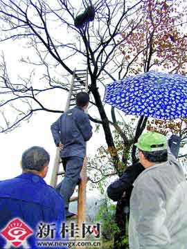 到中午12时左右,狗熊穿过了一片宽阔的冬闲田,躲进了资江边的灌木丛中。不到十来分钟,它又涉水过了资江,到了一片开阔地里,而后爬上了一棵大树,一直到桂林市林业局的技术人员赶到,用麻醉针将它制服。