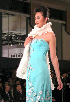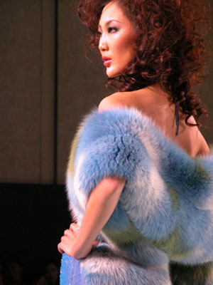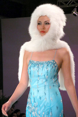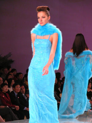 中国国际时装周NE·TIGER 2003/2004高级皮草晚装,个性奢华宝蓝系列。