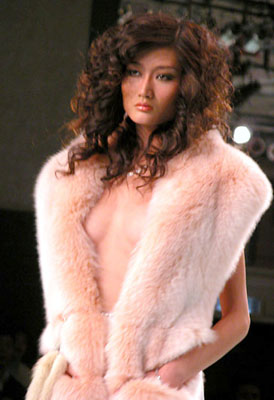 中国国际时装周上东北虎皮草公司宣布中国推出第一个高级晚装品牌NE·TIGER,图为高级皮草晚装展示。