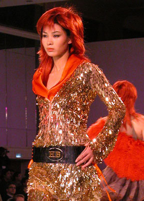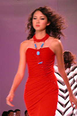 中国国际时装周上东北虎皮草公司宣布中国推出第一个高级晚装品牌NE·TIGER,图为高级皮草晚装展示玫瑰红个性色调皮草。