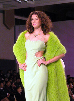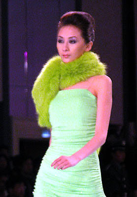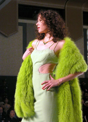 中国国际时装周NE·TIGER 2003/2004高级皮草晚装,湖水绿个性色系列。
