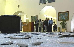 喜来登酒店不远处的“巴勒斯坦”酒店也遭到了火箭弹袭击,据称有2人死亡。