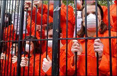示威者扮成关塔那摩囚犯的模样进行抗议。