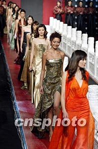 中国国际时装周2004春夏系列发布会二十一日在北京开幕,中外模特在T台上打造为期一周的时尚盛宴。中新社记者:毛建军