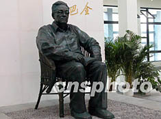 进入一楼大展厅,迎面就是巴金文学院的代表性雕塑——巴老青铜像,由四川省著名雕塑家谭云创作,被放置在一个高五米、宽三点六米的基座上,基座后面是一堵汉白玉墙,上刻巴老手迹“讲真话——把心交给读者”。二楼为大型展览《世纪真情》,也于今天下午开幕。