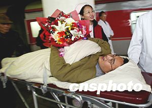 图:11.3火灾坍塌事故负伤记者到京治疗