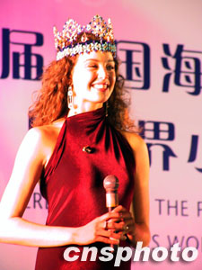 “你--好!海--口!你--好!海——南!你——好!中——国!”当美女们用新学会的汉语向海岛的人民问候时,全场两万多观众高声回应:“你好!世界小姐!”