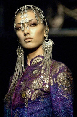 11月22日在印度的东北部港口城市加尔各答,印度模特在一场主题为'Lakme Stylefile Fall Winter Show 2003'的时装展示上,展示了9位印度顶级设计师的最新作品。