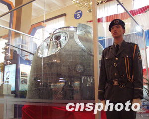 刚刚从香港、澳门、上海、重庆等地巡游返京的“神舟”五号载人飞船返回舱,以及航天员太空服、太空食品、降落伞等众多中国载人航天技术产品,也在展览会上一道与观众见面。