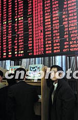 十一月二十四日,沪深股市大幅反弹。沪综指开盘1360.3点,最高1404.3点,最低1360.2点,收报1404点,比上个交易日收盘涨42.5个点;两市共成交185亿左右,和上个交易日基本持平。图为北京一证券营业部里,股民严密观察这一反弹行情。中新社记者:邹宪