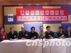 中国驻悉尼文化领事李金生(右3)24日在黄河合唱团于悉尼华埠举行的新闻发布会上说,此次音乐会对活跃侨界文化生活,使社区生活多样化,都是非常有意义的。