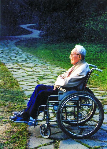 但也正是由于在完成《随想录》一百五十多篇写作后,巴金仍不曾放下他那坚强的笔杆,他在九十岁(1994)以后身体确实越来越显得衰老了,不仅头发全白,他那老年性慢性支气管炎更加严重,“文革”结束后不久就患上的帕金森氏病更使他行动受到影响,连笔也愈来愈不听使唤;同时由于身体严重缺钙,引起胸脊椎骨折和体位性血压波动。他在八十年代中期还可以站在特制的圈车里走动,而现在只好坐在轮椅上过日子;当然,每天几乎有一半时间还是躺在床上。