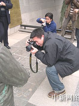网络媒体记者拍摄“历史证人的铜版脚印”。作者:玉树