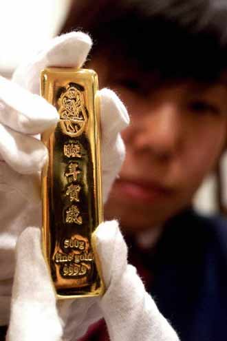 据中国青年报报道,11月27日,北京菜市口百货有限公司的工作人员向记者展示即将发售的“猴年贺岁”金条。