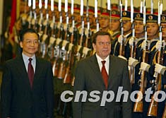 中国总理温家宝十二月一日在北京举行仪式欢迎德国总理施罗德访华。中新社记者:满会乔