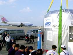 中新网12月2日电 台湾的“中华卫星二号”1日由设于新竹的“太空计划室”运往桃园中正机场,已于今天凌晨2时由“华航”货机运往美国洛杉矶,再转运加州范登堡空军基地。据台湾媒体报道说,这枚卫星定不动声色明年元月17日凌晨由火箭发射升空。