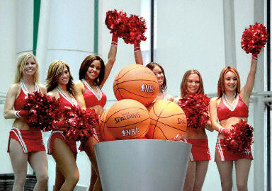 火箭啦啦队的“辣妹”们11月25日在红牛饮料北京签约式上表演。红牛饮料在中国成为NBA官方指定饮料。