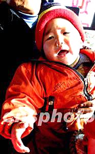 图为失去姐姐和奶奶的蒙古族婴儿。
