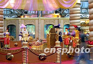 香港太古城在圣诞节来临之际,装饰童话故事《国王的新衣》呈现美轮美奂的布景,令顾客驻足欣赏。中新社记者:洪少葵